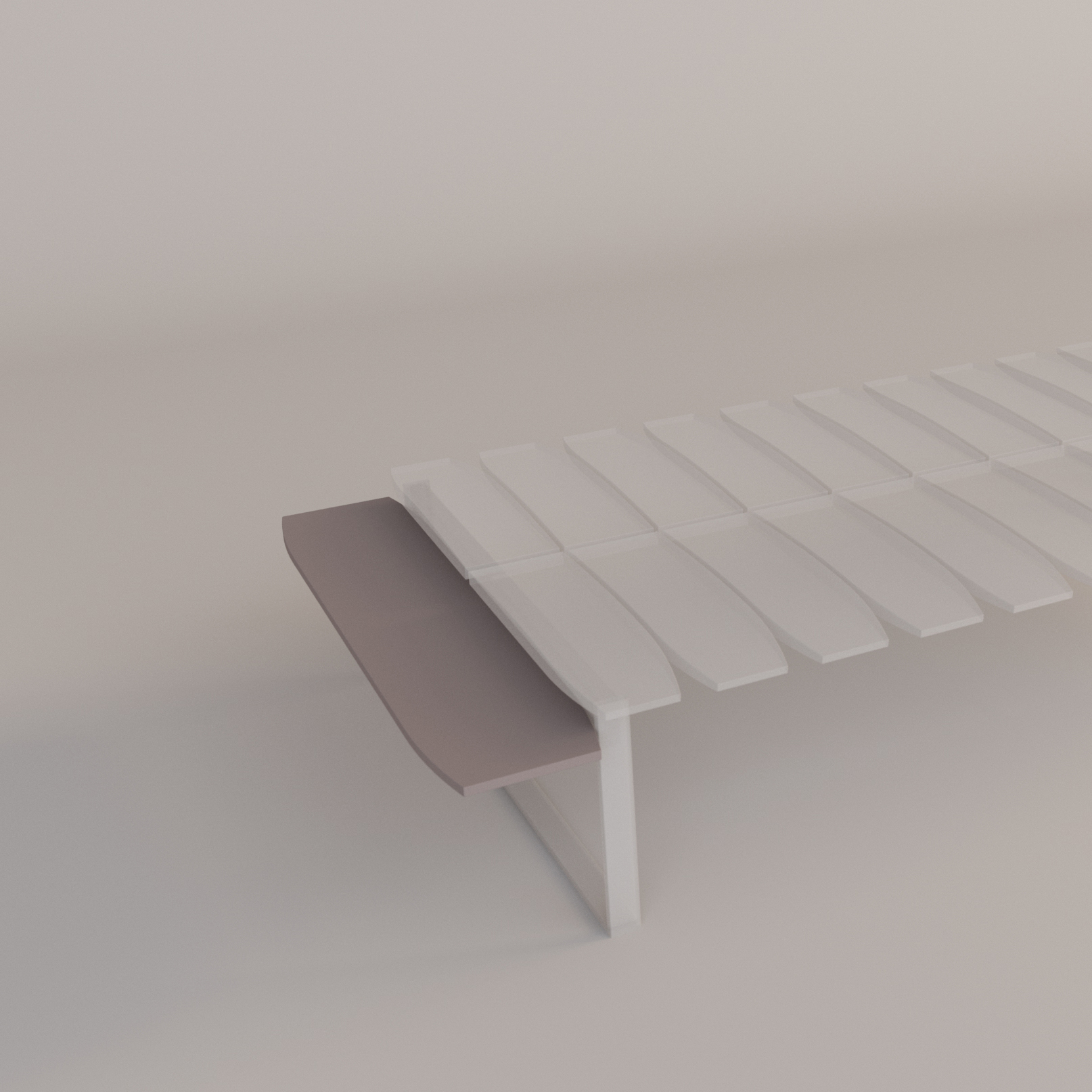 Panchina modulare curva a 30° con fianchi a tubolare e struttura in acciaio verniciato a polveri. Seduta a doppia profondità con doghe strette in legno massello levigato e verniciate a mano con olio a base di semi di lino. Disponibile in diversi abbinamenti di colore.